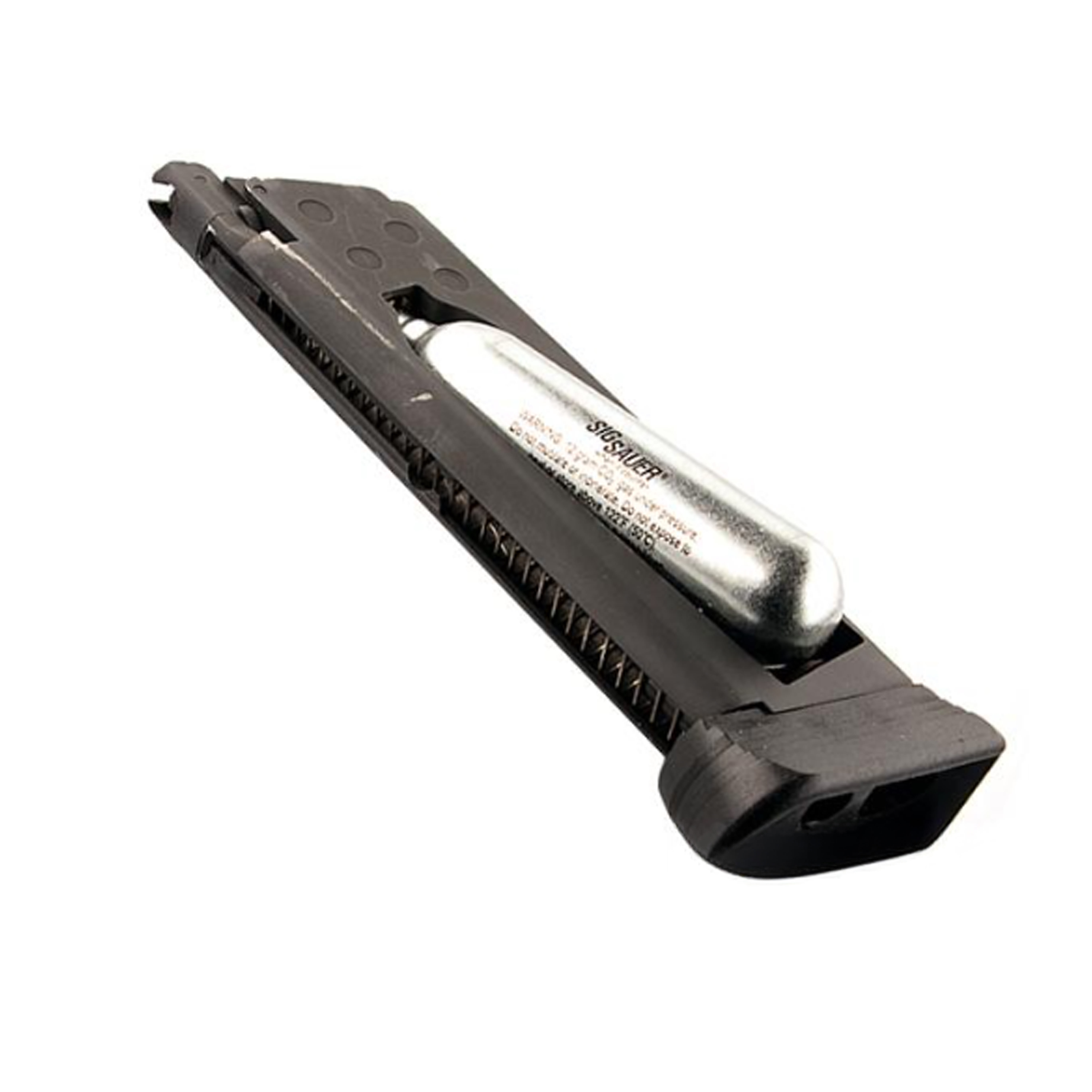 The Sig Sauer ProForce 1911 CO2 is designed for use with the Sig Sauer ProForce 1911 CO2 airsoft pistol. Featuring a durable steel magazine body and a polymer extended base plate for improved grip and handling, this magazine houses a standard 12-gram CO2 cartridge and holds up to 14 BBs for consistent performance during airsoft matches or training sessions. The extended base plate provides added control and balance, enhancing overall shooting comfort and speed during reloads. Built to the exacting standards of Sig Sauer, this magazine ensures reliable feeding and CO2 delivery for your ProForce 1911 pistol.