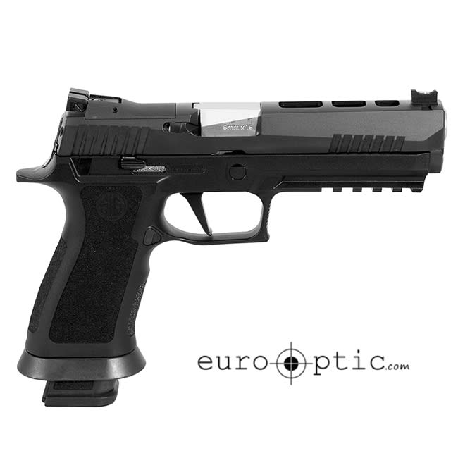 The P320 X-Five 9mm incorporates all of the most important features to maximize accuracy, shootability and ergonomics while maintaining the modularity of the standard P320 platform. The X-Series grip module is exclusive to this line and features a deeper trigger guard undercut, a higher back strap and an extended beavertail to ensure a higher grip for better recoil management. It also comes standard with a removable grip weight for improved balance, as well as a removable magazine funnel and extended slide catch lever to facilitate faster reloads. Like all X-Series P320s, the X-Five has the straight trigger that breaks at 90 degrees for an even better feeling pull. The 5" bull barrel and lightened slide pair perfectly for match-grade accuracy and are equipped with Dawson Precision Fiber Optic front and fully-adjustable rear sights.