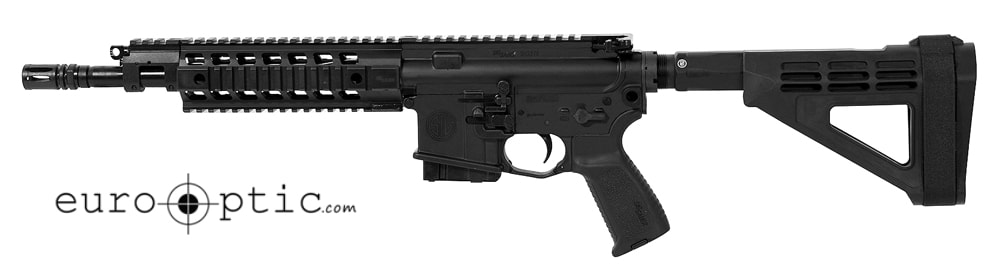 The Fulfilled Potential Of The AR-15/M16 in a 10"" pistol One of the most tested and proven weapons systems in the world achieves ultimate refinement with the introduction of the SIG516 rifle. With its Nitride treated, military grade barrel and adjustable, four-position gas regulator, the SIG516 incorporates all of the most desirable mechanical improvements. Add to these a free-floating aluminum forend, and you have the most advanced, versatile AR-based rifle available.Features; Gas piston operating system, Four-Position gas regulator, free-floating military grade Nitride treated barrel, M1913 Picatinny flat top upper, 7075-T6 Aircraft grade aluminum upper and lower receiver with hard coat anodize finish, and flip-up iron sights.