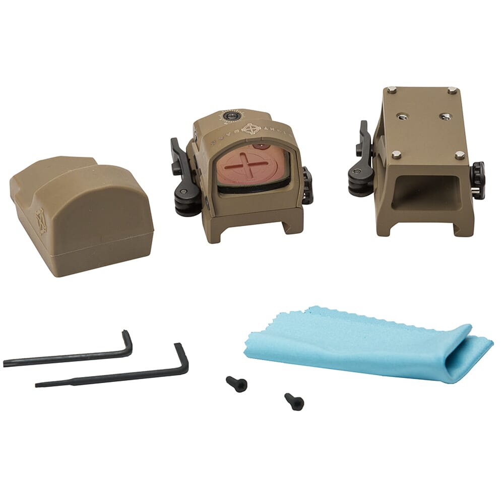 Inspired by law enforcement, the Sightmark Mini M-Spec LQD DE (SM26043-LQD) is an ideal optic for hunting, competition shooting, and home defense. The Mini M-Spec is built from aluminum alloy with a steel protective shield making it one of the toughest compact optics out there. With 10 brightness settings, the Mini M-Spec reticle is visible in virtually any environment, from day time to extremely low light conditions. Mini M-Spec users benefit from the addition of ambidextrous switch controls to fit the needs of both left- and right-handed users. Mini M-Specs boasts a coated and scratch-resistant lens, 12-hour auto shut-off and is IP67 rated waterproof, dustproof and shockproof. The optic comes complete with a locking quick-detach mount and AR riser mount perfect for ARs, AKs, shotguns, and pistols.
