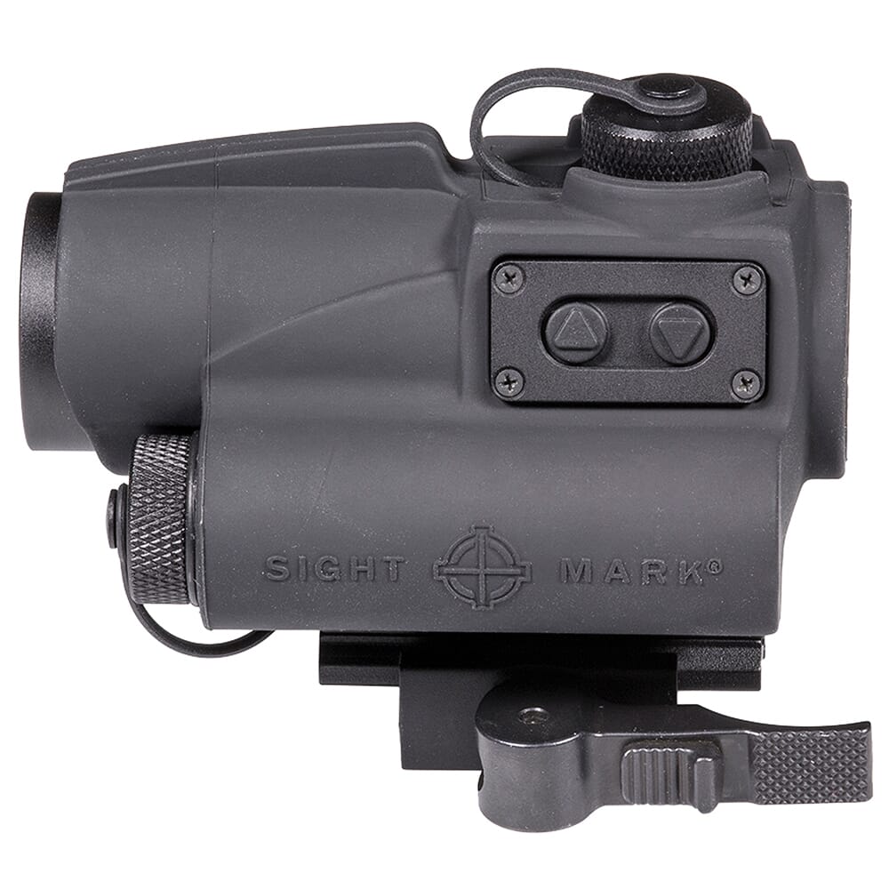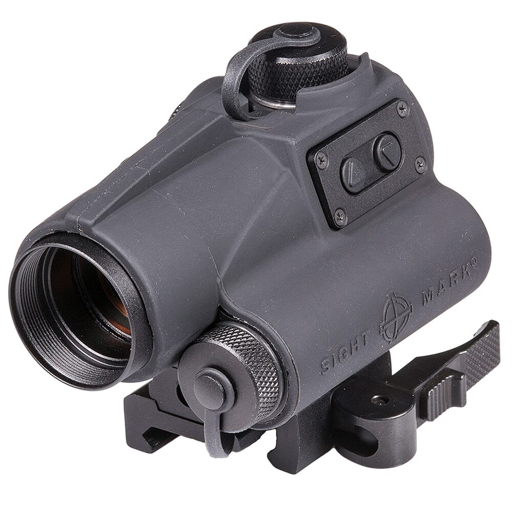 The Sightmark Wolverine CSR Red Dot Sight is designed specifically for shotguns and short-barreled rifles. The CSR sports a 4 MOA red dot reticle with a 23mm objective lens and adjustable digital switch brightness controls. Compact and light, the CSR model weighs only 10.3 ounces, and along with the FSR, offers very low power consumption. The CSR also offers variable brightness and night vision modes, which enables the ability to co-witness with a night vision sight. The all new locking quick detach mount ensures the sight remains secured to the weapon, but can be more quickly and easily detached.