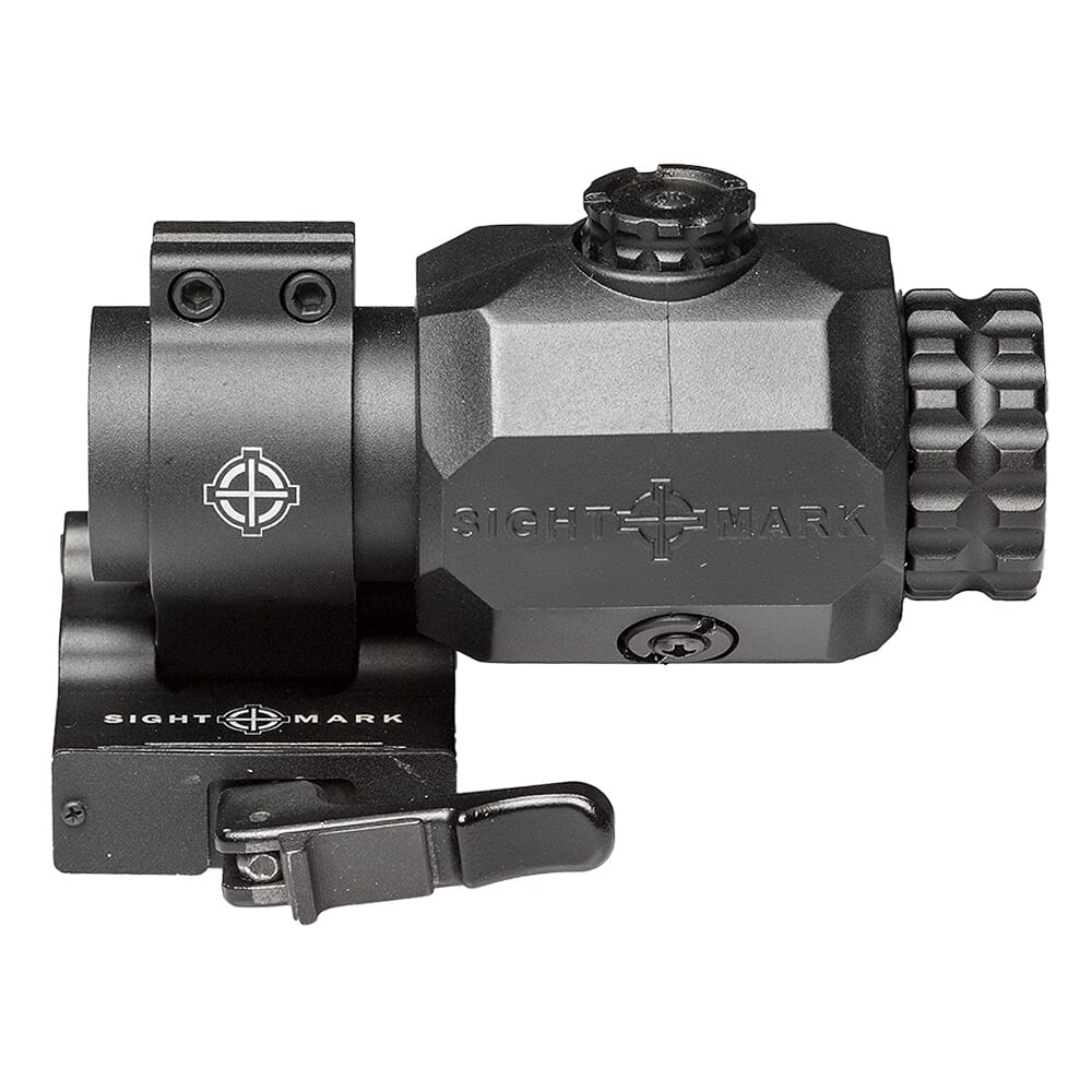 Designed to mount behind a reflex sight or red dot to increase magnification, the Sightmark XT-3 Tactical Magnifier allows shooters to engage targets at further distances with a 23mm objective lens and 3x magnification. Compact and lightweight the Sightmark XT-3 features a flip-to-side mount, providing rapid transition between your gun’s optic system, and 4” eye relief, improving overall comfort for shooters. External adjustments eliminate the need for tools for reticle alignment while fully multi-coated optics and rubber armored housing increase the XT-3 Magnifier’s image clarity and durability. EOTech® and Aimpoint® compatible, the Sightmark XT-3 is quickly mounted and removed via a locking, quick detach mount.