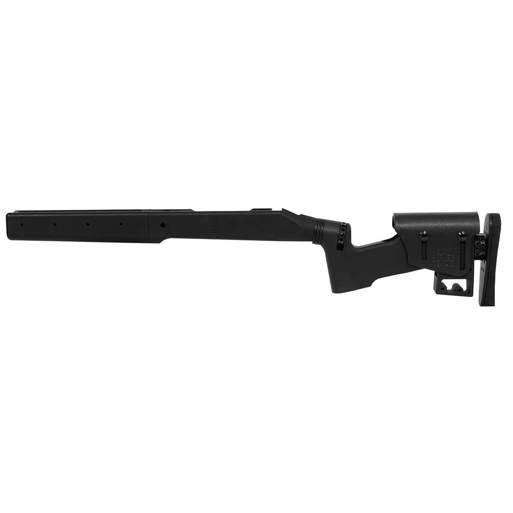 The Sisk STAR Stock is known for its length of pull adjusted by rotating the recoil shaft, 360° rotating recoil pad, cheekpiece CNC machined from Kydex, and an adjustable toe. This is a right-handed STAR Rem 700 Long Action T1 stock.