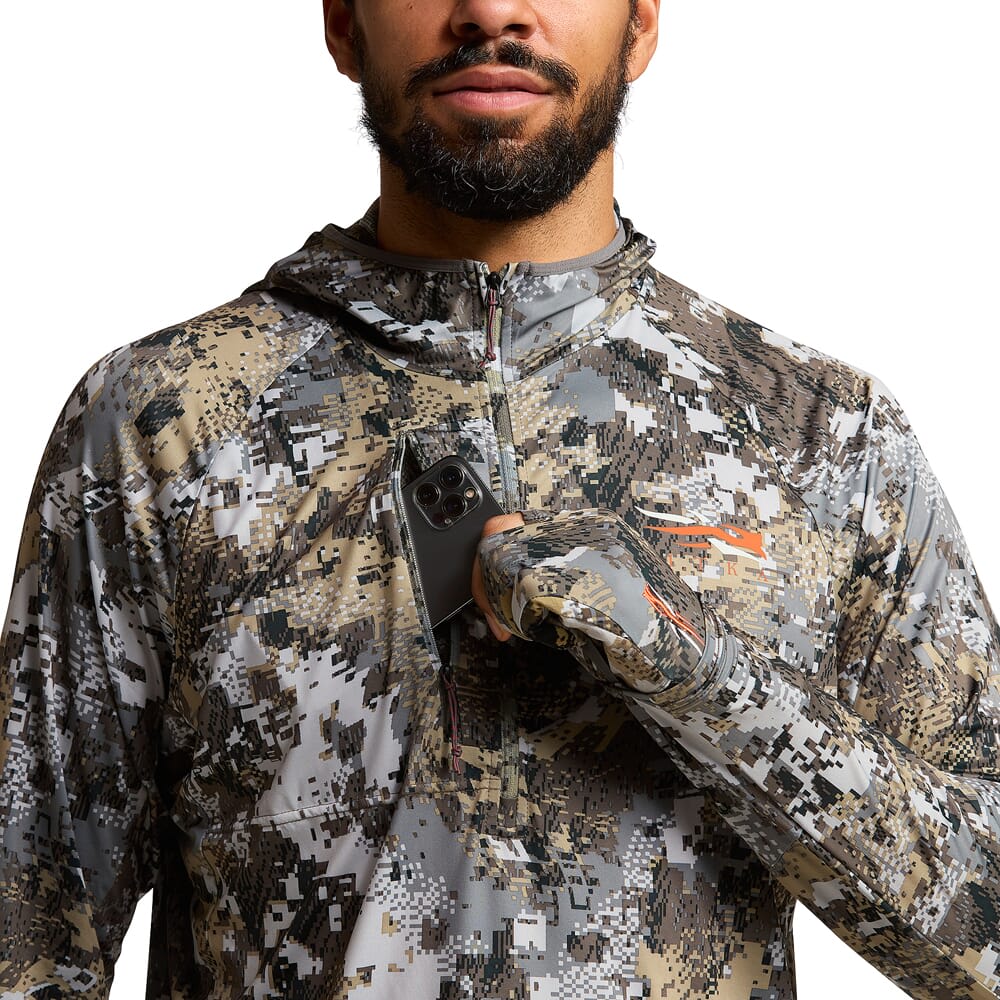 Sitka Equinox Guard Hoody was specifically designed for warm weather hunts, and comes equipped with Sitka exclusive innovations to help you remain cool and keep the bugs off you. Equinox Guard Hoody prevents contact with insects in three ways: minimal skin exposer, bite-resistant fabric, and a built in insect repellant. The fabric was designed by Sitka with help from Snell Scientifics to create a textile that was lightweight and reduced the likelihood of mosquito bites. This special fabric was then treated with Insect Shield protection, which repels mosquitos, ticks, ants, chiggers, and other nuisance insects. To provide all-around protection, the Equinox Guard Hoody features a long tail for tucking into the back of your pants, and a mesh face mask. In addition to providing excellent protection from pests, this Hoody is also light, highly breathable, and wicks away sweat in hot, humid conditions. Other features of the Equinox Guard Hoody include thumb loops for a seamless fit with gloves, and Polygiene Odor Control technology is included to neutralize odor causing microbes.