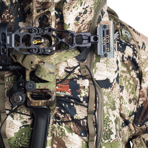 The Ascent 12 is a stripped-down, dialed-in daypack for moving fast, this panel loader opens into a 1,200 cubic inch main compartment, complete with hydration bladder sleeve and suspension hook. Three zippered mesh pockets inside the front panel organize your necessities, while external bungie compression doubles as additional storage. A new lightweight toggle bow suspension system quickly secures your weapon.