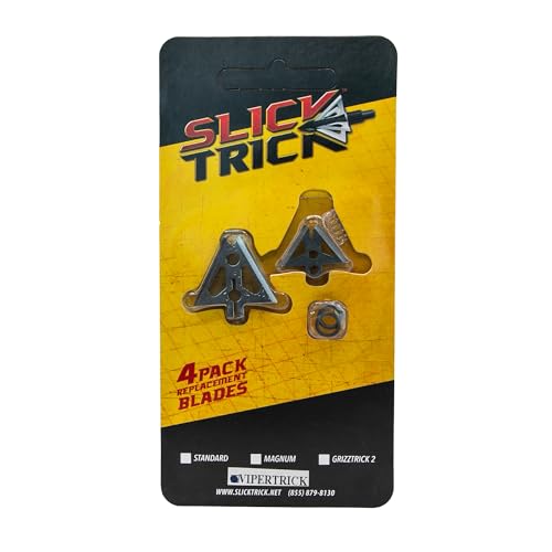 The Slick Trick 4pk, 1-1/16" VIPERTRICK Extra Blades, 100/125gr 15STVTXBL broadheads are designed for hunters seeking maximum penetration and devastating impact. Featuring a cut-on-contact design with .035” stainless steel blades, these broadheads offer a total cutting diameter of 2 5/8 inches. The Alcatraz BladeLock system ensures the blades stay securely in place, while the super steel ferrule enhances durability. Ideal for both 100 and 125-grain setups, the ViperTrick broadheads provide true flight and shorter blood trails, making them an excellent choice for big game hunting