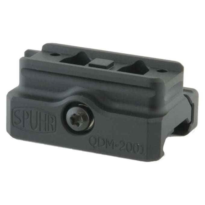 The Spuhr Aimpoint Micro Picatinny Red Dot Mount with QDP Lever QDM-2001 is one of the most rugged and reliable mounting solutions available for Aimpoint Micro and CompM5 optics. Engineered to fit any Picatinny or STANAG NATO rail, it features a fully adjustable QDP quick-detach lever for rock-solid, repeatable mounting. With a height of 30mm and weighing just 80g, it strikes a perfect balance between lightweight design and robust durability. Compatible with a range of red dot sights—including Aimpoint Micro T-1/T-2, CompM5, and select Holosun models—the Spuhr QDM-2001 ensures precise optical alignment, superior recoil resistance, and long-term zero retention in even the harshest conditions.