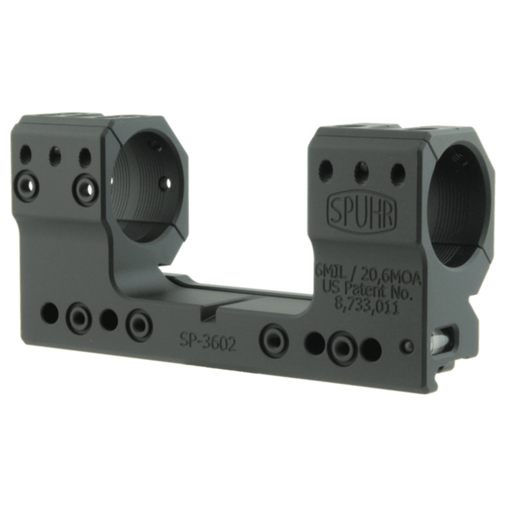 The Spuhr Steel Side Clamp Picatinny Scope Mount 30mm H38mm/1.5" 6MIL/20MOA PIC SP-3602M is engineered for precision shooting, offering significant elevation adjustment with its 6MIL/20MOA tilt. Constructed from high-quality steel, this mount provides exceptional durability and stability. With a height of 38mm (1.5") and a tube diameter of 30mm, it ensures a secure fit on Picatinny rails. The Spuhr SP-3602M mount includes a 10-degree wedge for precise scope alignment, making it suitable for long-range shooting and tactical applications.