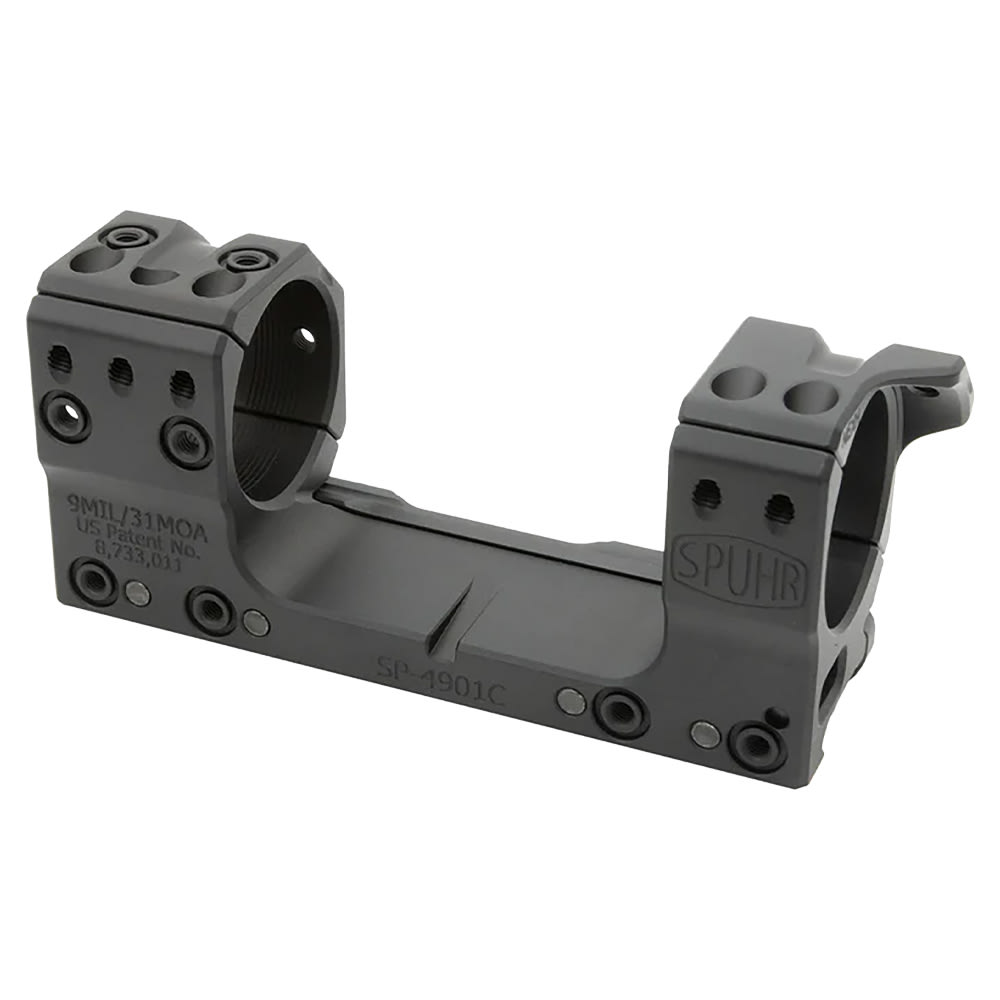 The Spuhr SP-4901CM Steel Side Clamp Picatinny Scope Mount is a premium 34 mm mount with a 30 mm (1.181") height and 9 MIL (30 MOA) built-in tilt for long-range elevation. Made from billet 7000-series aluminum with a hard-coat anodized finish, it ensures exceptional strength, precision, and durability.