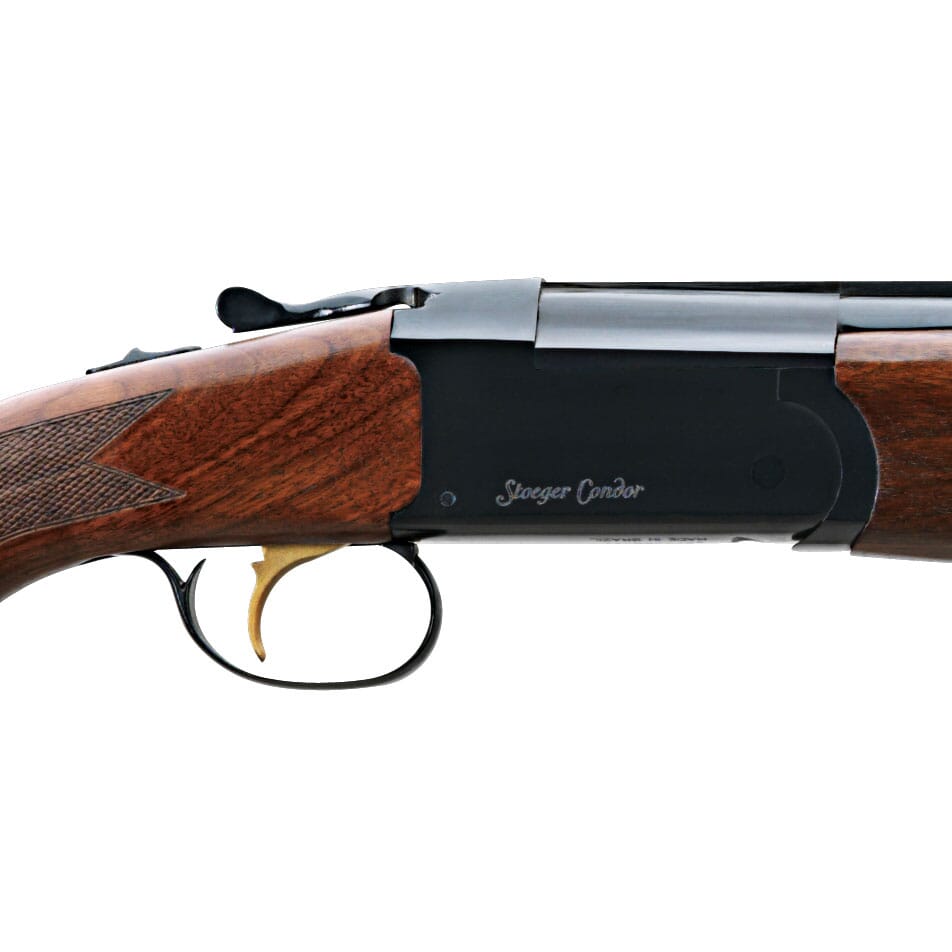 This Stoeger Condor field over and under .410 shotgun has a blued receiver, machine-turned, monobloc sides, ventilated rib, fixed chokes, and A-grade satin walnut stock.
