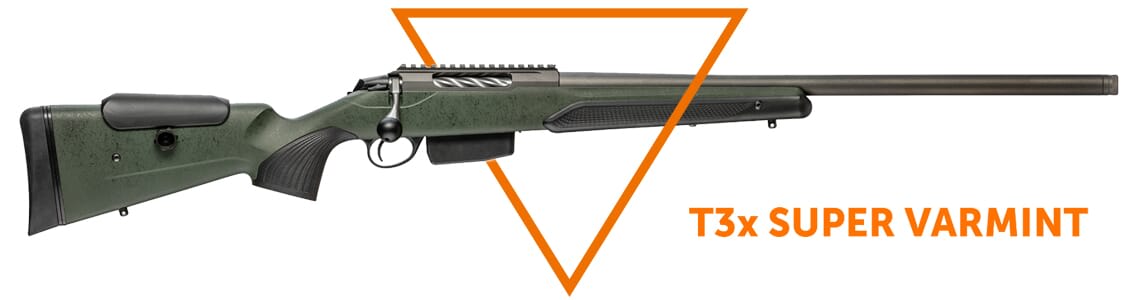 New for 2022, Tikka gives its renowned T3x rifle platform a new level of ruggedness and reliability with the T3x Super Varmint! Featuring upgrades such as a Roughtech stock, a barreled action with a Cerekote finish, and a widened fore-grip and vertical grip.