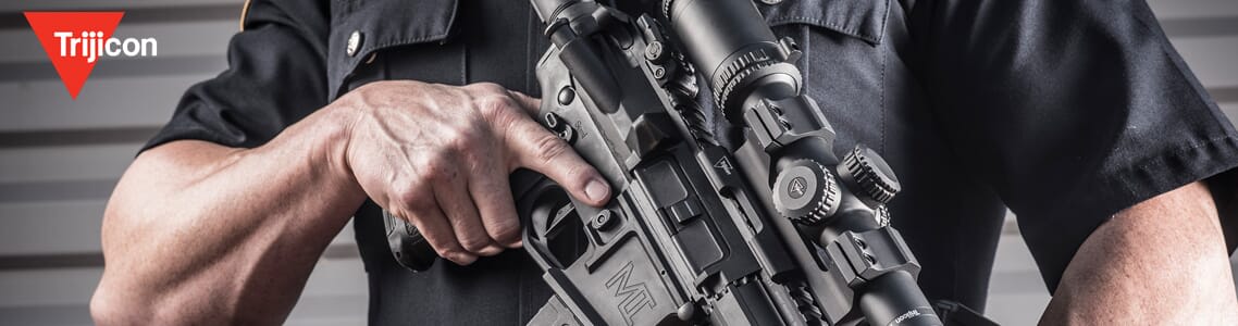 Highlights of Trijicon AccuPower 1-4x24 Riflescopes consist of include 30mm scope tube, LED illumination in either red or green, second focal plane reticle positioning, bullet drop compensator (in select models), Bindon Aiming Concept, and 6061-T6 housing with a black hard coat anodized finish. The LED reticle illumination lets operators use Trijicon’s Bindon Aiming Concept (BAC) for both eyes open shooting and also lends extra contrast to the target image.