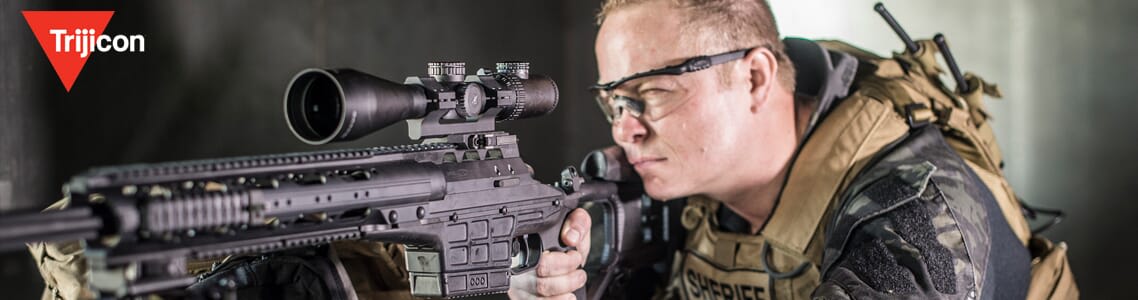 The list of features of the Trijicon AccuPoint 2.5-10x56 is inclusive of the highest quality glass, 30mm scope main tube, 6061-T6 housing material with a black hard coat anodized finish, waterproof integrity up to 10 feet/ 3 meters and more. In addition to that, the scopes provide dual illumination through fiber optics (during the day) and tritium (at night) for a vivid aiming point without the need for batteries. Also known as AccuPoint TR22, available reticle options consist of BAC Amber Triangle Post Reticle, Standard Duplex Crosshair w/ Amber Dot and MIL-Dot Crosshair w/ Amber Dot.