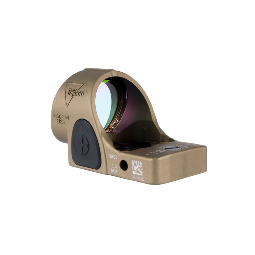 The Trijicon SRO 1.0 MOA Adjustable LED Red Dot Sight is built for speed, precision, and durability on pistols and competition-oriented platforms. Its large, circular viewing window provides an expansive field of view that makes dot acquisition fast and intuitive, while the crisp 1.0 MOA red dot allows for precise shot placement at distance. The adjustable LED brightness settings accommodate a wide range of lighting conditions, and the rugged aluminum housing is finished in a coyote brown anodized coating for a distinctive, durable appearance. Designed to withstand hard use and slide-mounted recoil, the SRO delivers reliable performance for competition, duty, and defensive applications.