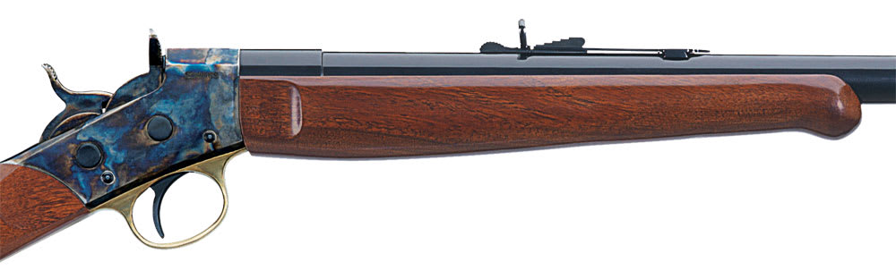The rolling block design is one of the strongest actions ever produced. Using modern metals and more precise manufacturing methods, Uberti is able to produce a rifle that’s one-third of the original gun’s size and weight, yet retains all the strength for use with today’s modern ammo.