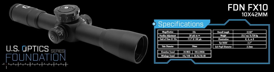 Built on a precision machined 34mm aluminum maintube, the US Optics’ Foundation FX10 is a 10x fixed magnification riflescope designed to handle the most brutal shooting scenarios while delivering top-tier optical clarity.