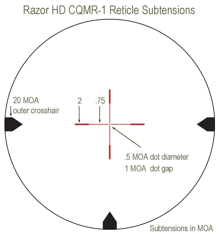 Vortex Optics breaks new ground with the introduction of the Vortex Razor HD 1-4x24 rifle scope. Built literally from the ground up to meet the demands of combat, law enforcement, 3-Gun competition, and the discriminating tactical enthusiast. The Vortex CQMR-1 Reticle (Close Quarter Medium Range) is a precision-etched first focal plane reticle for rapid close and mid-range shooting. Expect fast handling and deadly accuracy when it gets up close and personal with the advanced Vortex Razor HD 1-4x24 rifle scope.