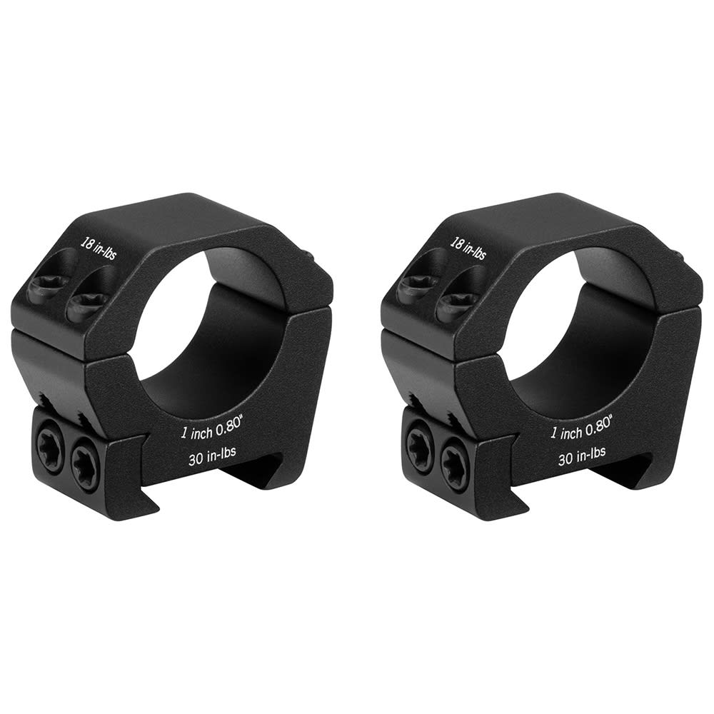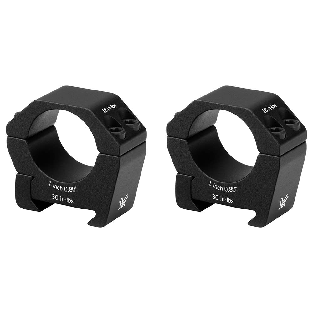 The Vortex Sport 1" Low (.80") Torx T-25 Matte Black Riflescope Ring SPT1-L is a rugged, precision-machined mounting solution designed for shooters who want a secure, lightweight, and streamlined setup for their 1" riflescopes. Its low-profile .80" center height places the optic closer to the bore for an optimal cheek weld and improved ergonomics on many rifle platforms, while the durable matte black anodized finish adds both protection and a clean, professional look. Built with Torx T-25 hardware for both the base and cap screws, the ring ensures strong, consistent engagement, supporting proper torque values of 30 in-lbs on the base screws and 15–18 in-lbs on the cap screws to maintain repeatable zero and long-term reliability. Weighing just 1.58 oz per ring, it provides excellent strength without unnecessary bulk, making it an ideal choice for hunting, range shooting, and precision applications where stability and low weight matter.