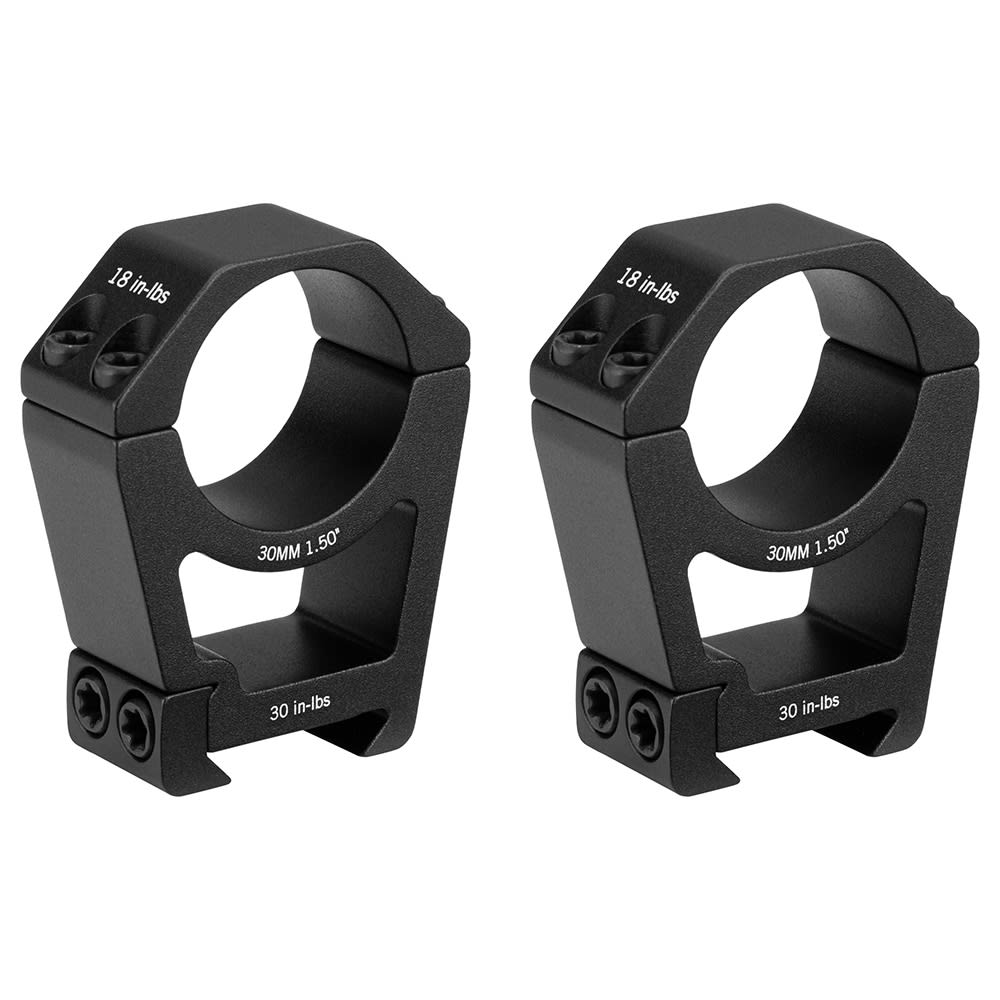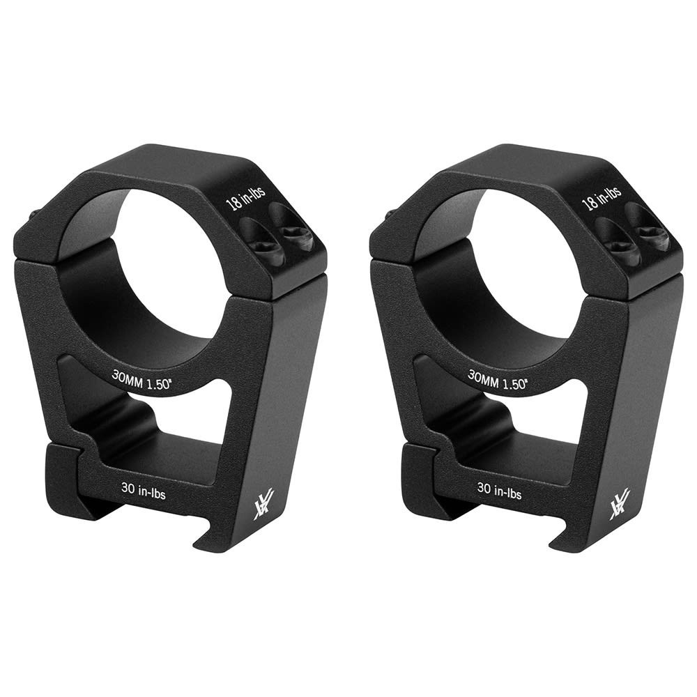 The Vortex Sport 30mm Extra High (1.5") Torx T-25 Matte Black Riflescope Ring SPT30-XH is a robust, precision-engineered mounting solution designed to provide maximum clearance for 30mm riflescopes with large objective lenses or rifles that require elevated scope positioning. Its extra-high 1.50" center height ensures proper eye alignment and comfortable shooting ergonomics, while the durable aluminum construction with a matte black anodized finish offers long-lasting strength and a sleek, low-profile appearance. Both the base and cap screws utilize Torx T-25 fittings, allowing for consistent, secure engagement, with recommended torque values of 30 in-lbs for the base screws and 15–18 in-lbs for the cap screws to maintain a repeatable zero. Weighing 2.12 oz per ring, it delivers dependable stability and performance without unnecessary bulk, making it an ideal choice for precision shooting, hunting, and specialized rifle setups.
