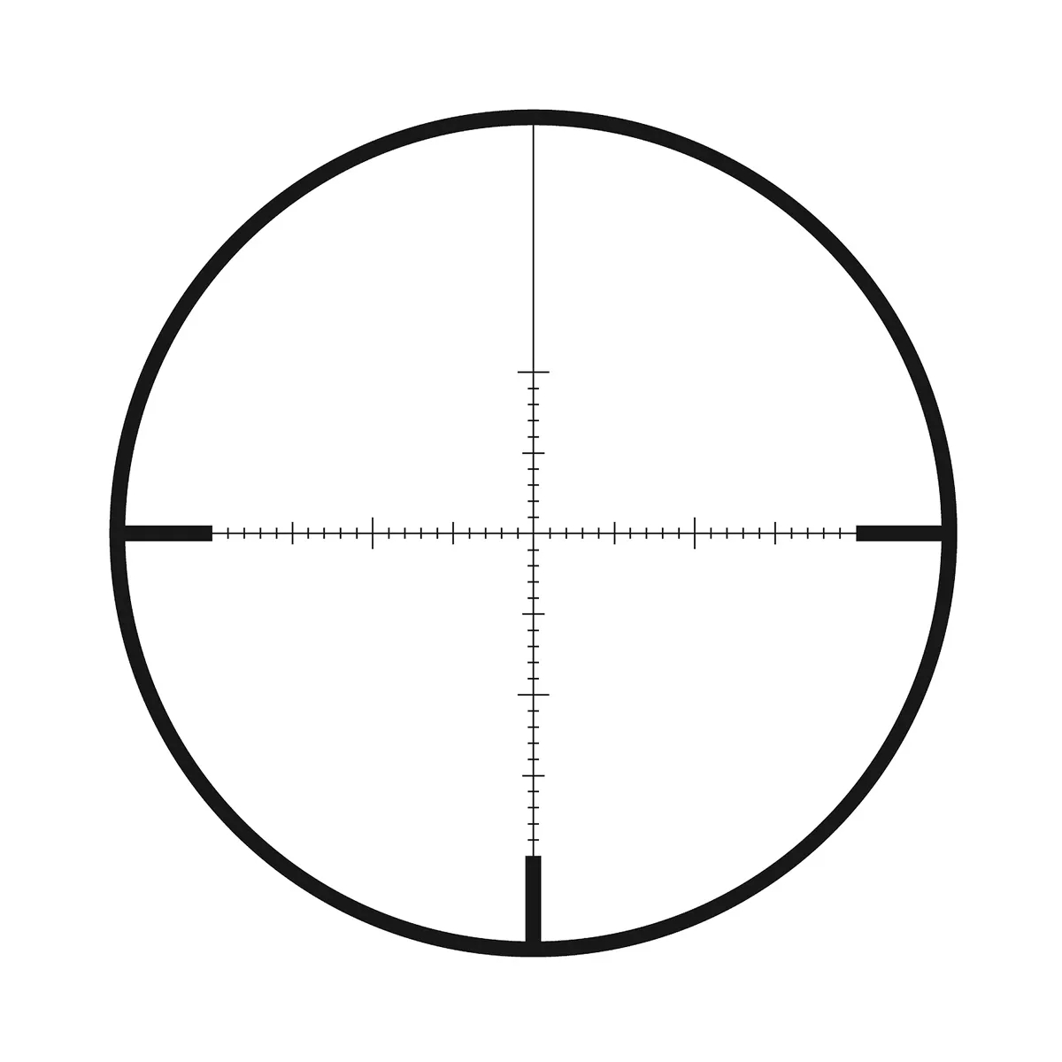 The Zeiss ZMOA ballistic reticle is situated in the second image plane and features a subtension of 1 MOA (ZMOA-1) between the tick marks when the riflescope is set to its reference magnification. What sets this reticle apart is that the tick marks are exclusively displayed along the crosshairs, allowing the shooter to maintain an excellent overview of the entire field of view.