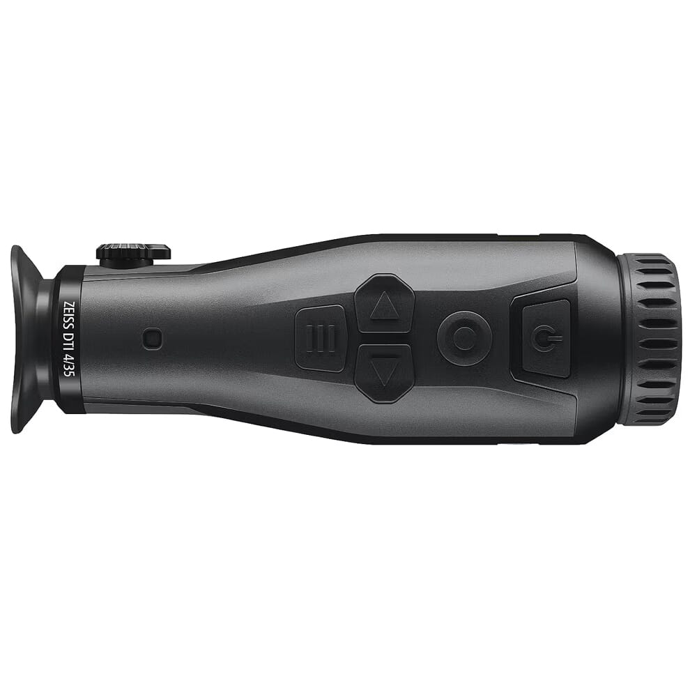 The Zeiss DTI 4/35 Thermal Imaging Camera 527017-0000-000 boasts premium thermal imaging capabilities, featuring an advanced 640x512 thermal sensor and a high-performance 50mm objective lens. With an impressive detection range of 2017 yards, the camera projects heat signatures onto a 1024x768 AMOLED display for unparalleled clarity. Zeiss 527017-0000-000 offers a range of secondary modes, including newly designed color modes, detection mode for enhanced visibility, fog mode for humid conditions, and a movement alert function. The smart standby mode conserves battery life by automatically activating the device when brought to the user's eye. Designed for user comfort, the camera features an optimized triangular button layout, slightly raised buttons for ease of use with gloves, and an ergonomic shape suitable for both left and right-handed users.